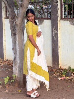 Stay stylish and comfortable with this beautifully designed lime green kurta set. Crafted in soft, breathable fabric, this outfit comes with a matching white pant and dupatta, making it perfect for daily wear, office, college, and casual outings.