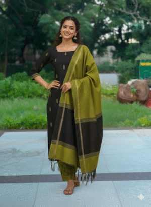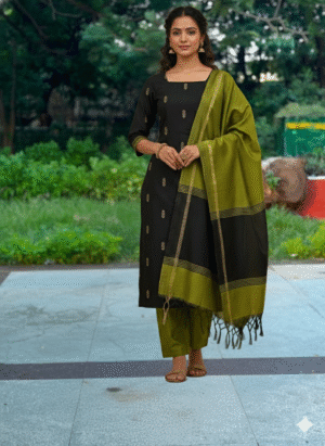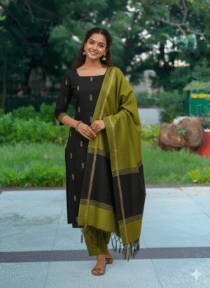 A simple, elegant salwar suit made for all-day comfort. Crafted in raw silk, it has a rich natural texture that looks graceful without being heavy. The soft cotton lining inside keeps it breathable and comfortable, even for long hours.