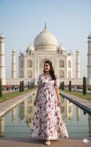 Whether youโre exploring beautiful landmarks or enjoying a casual outing, Amrutha is your go-to outfit for an effortlessly graceful look.