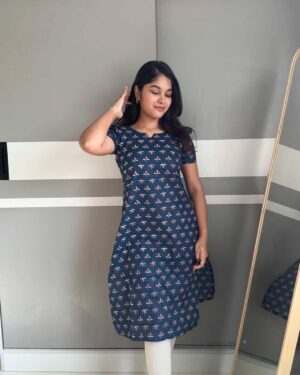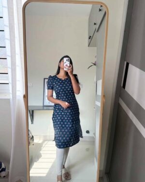 This navy printed kurti is perfect for workwear, casual outings, or your everyday style.