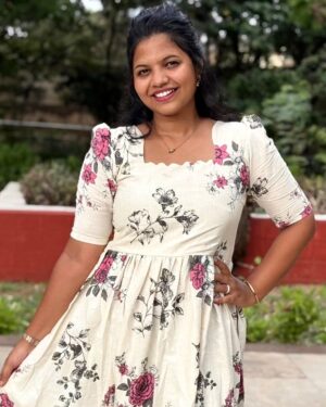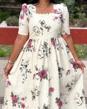 Crafted from breathable cotton fabric, it features a flattering square scallop neckline, puff sleeves, and a gently flared that accentuates your waist while ensuring comfort all day long.